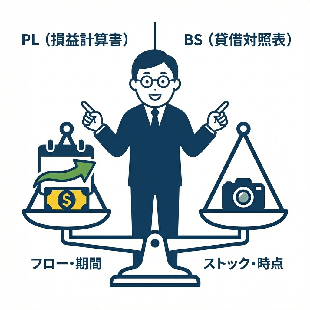 「貸借対照表(B/S)」と「損益計算書(P/L)」の役割の違いを